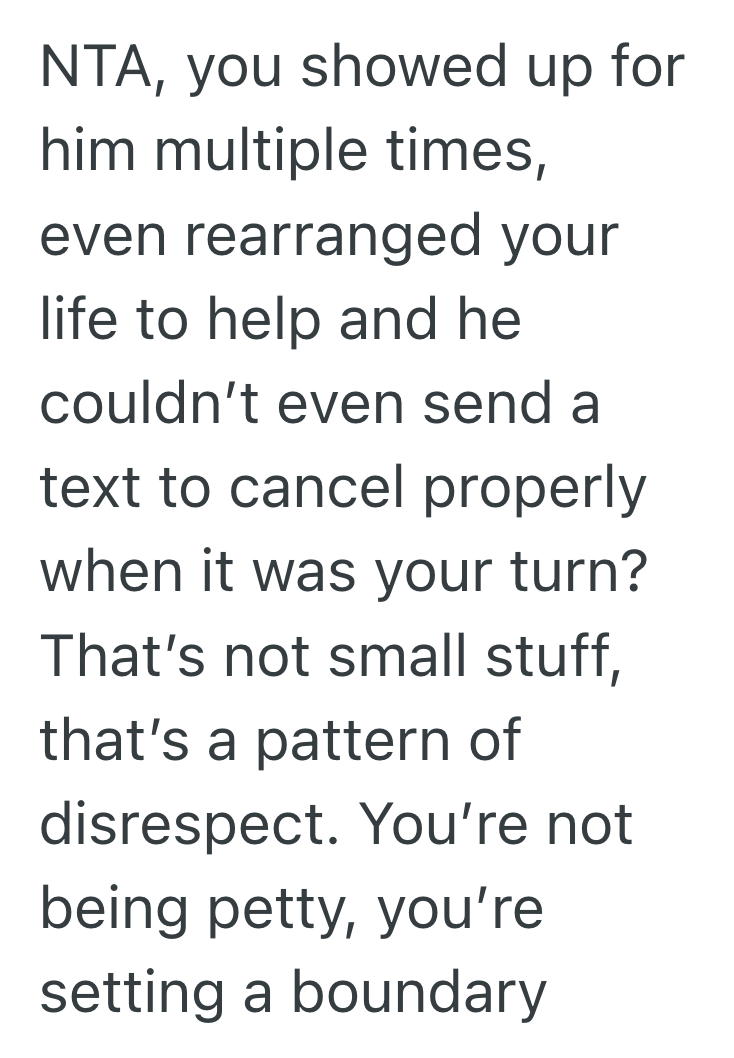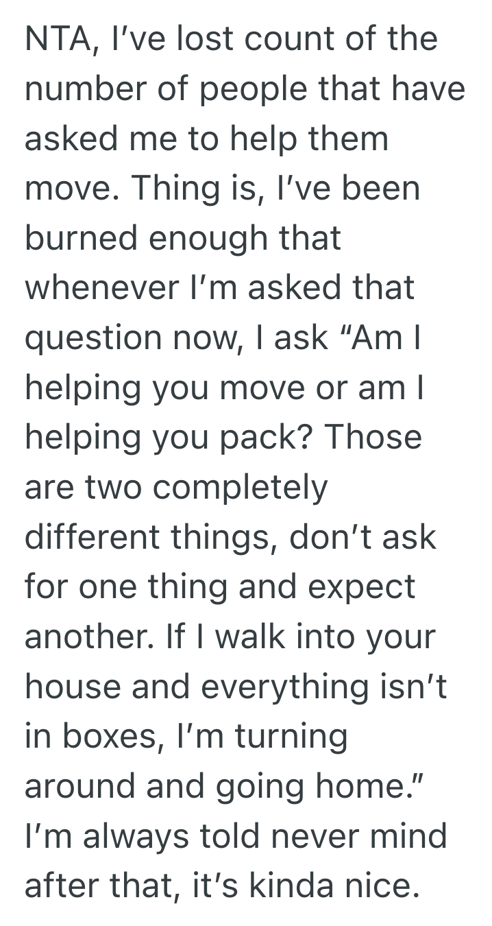 So when his brother expected help moving yet again (despite never returning the favor), he finally stood up for his own boundaries and told his brother he was on his own.