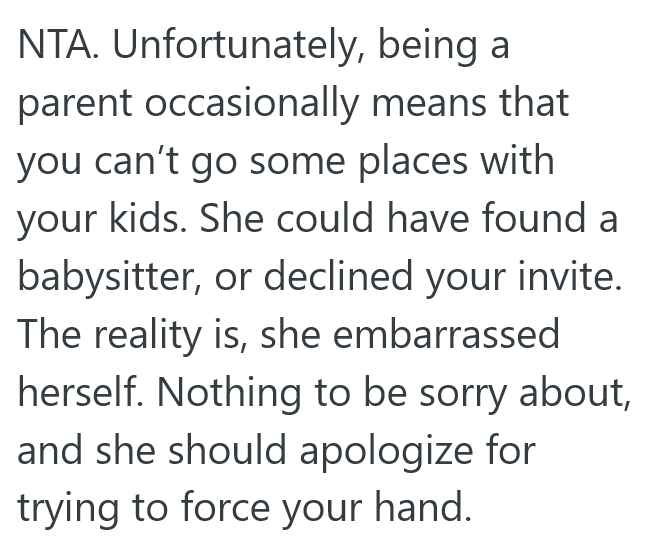 She ended up leaving and texting me later that I humiliated her and made her feel like a bad mom in front of the family.