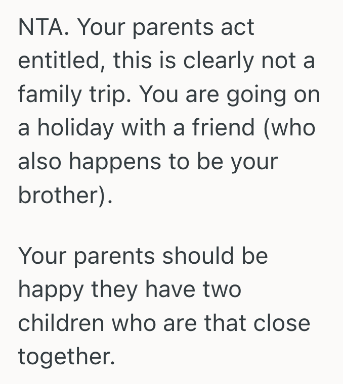 He Wanted Quality Time With His Brother Away From Family Conflict, But His Parents Struggled To Accept Being Left Out Of Their Vacation Plans