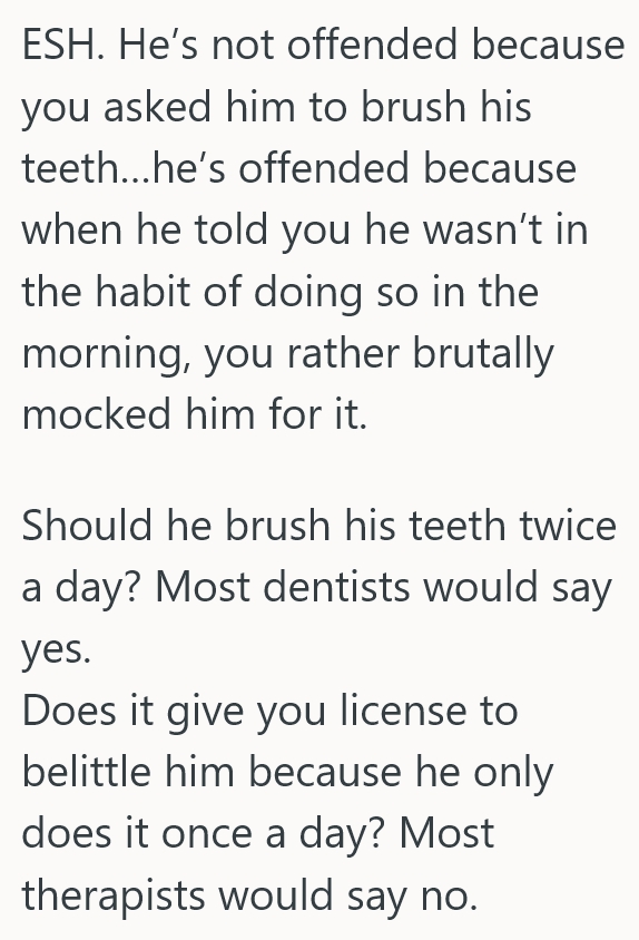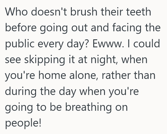 I said that I think it’s gross and I can’t imagine him not brushing his **** teeth in the morning??