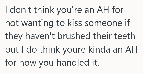 However, today I told him that I’m seriously not willing to kiss or get intimate unless we both brush our teeth because I think it’s pretty gross.