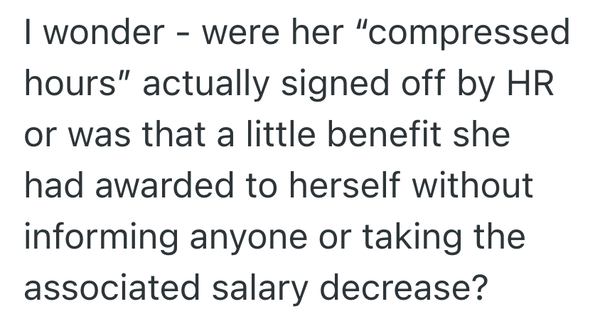 Years ago I worked in a semi-public sector job as part of a successful team helping make life easy for local businesses. Our team boss took a good job in the private sector and a new boss was recruited from a decent organization similar to ours in a different part of the country. She worked compressed hours Monday-Thursday and was off on Fridays.