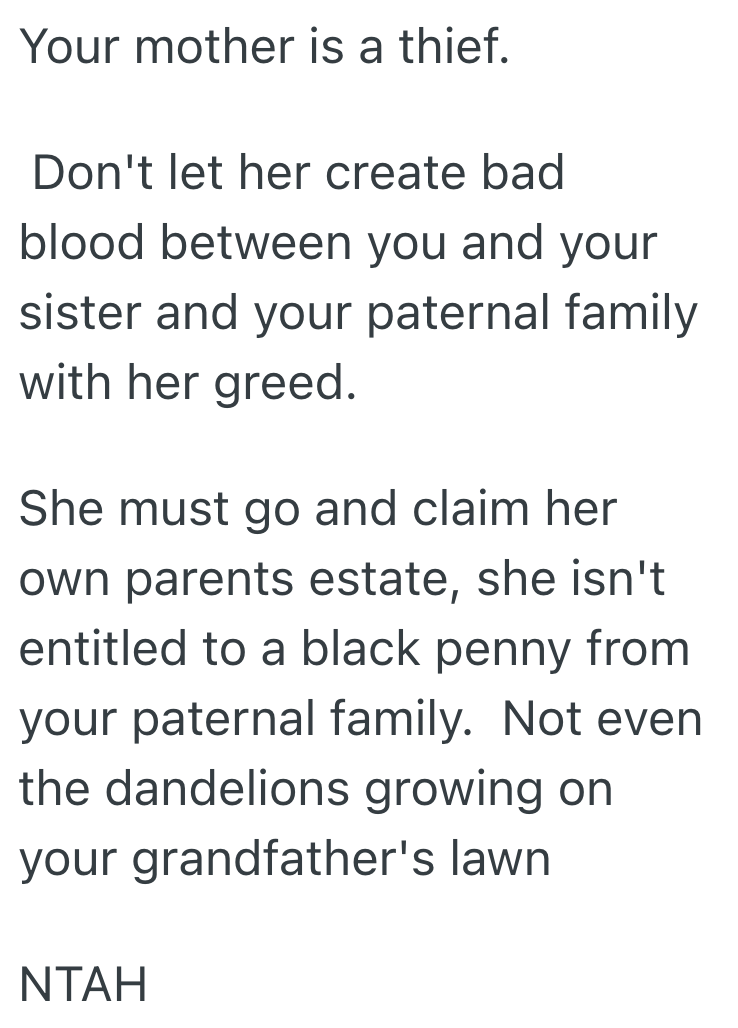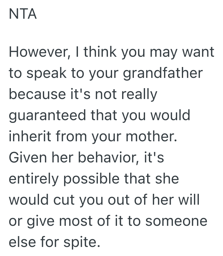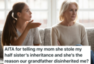 AITA for telling my mom she stole my half sister’s inheritance and she’s the reason our grandfather disinherited me?