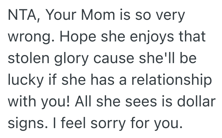 At the end of the day it’s his money. And my mom’s actions have resulted in me being disinherited.
