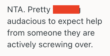 Others agree with me and say it was pretty bold of them to expect help after bailing.
