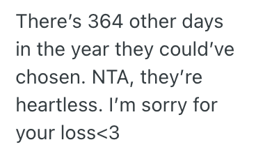 My mom refuses to attend, saying it feels like a slap in the face and a huge disrespect to my sister’s memory.