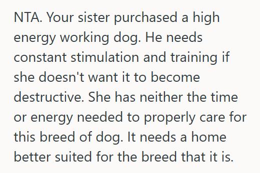 Here’s someone who gives the perfect reasoning for why they shouldn’t keep the dog.