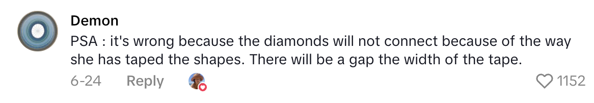 Basically, the tape was touching, so in the end, the diamonds wouldn’t be connected at their points.