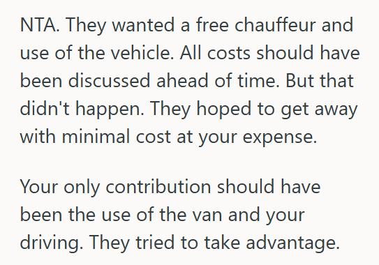 AITA for revealing the “rental costs” of my van after the trip was made?