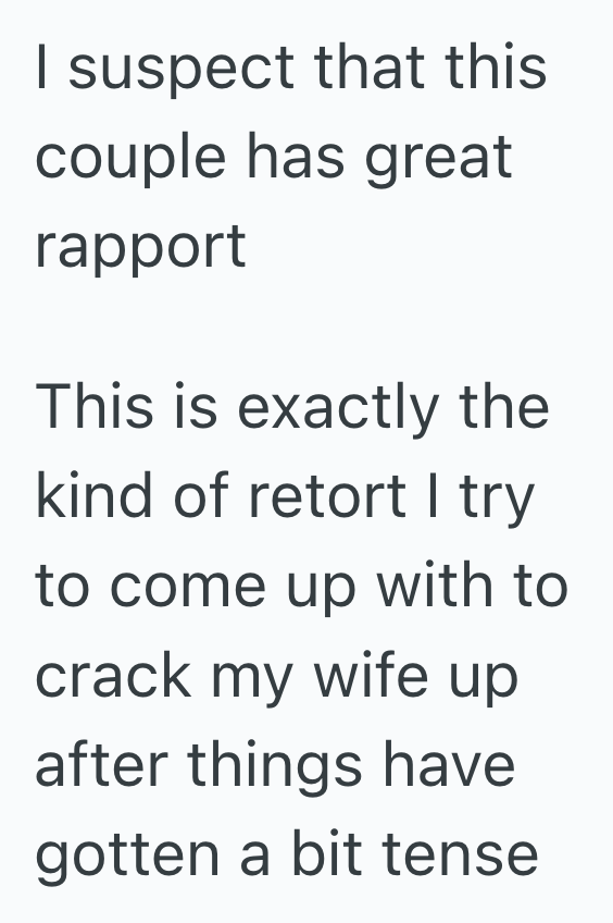 This exchange may actually be a sign of an exceptionally healthy relationship.