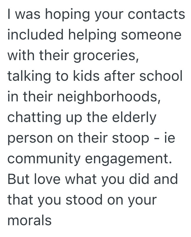 That was the last time I was hounded about stupid stats or contacts.