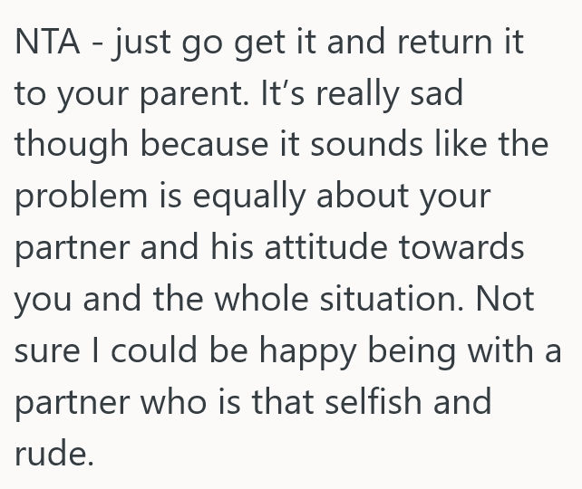 We have other issues (relationship problems) and I think it’s part of the reason why my partner acts like his decision matters more about not wanting to give it back.