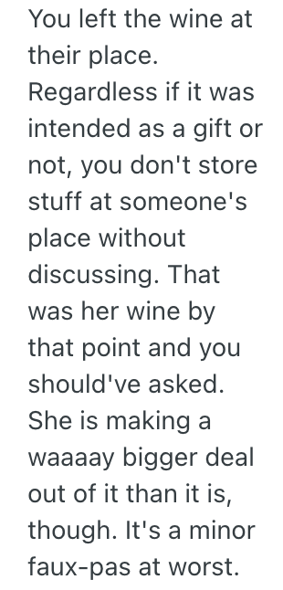 I genuinely didn’t intend to cause harm, but now I’m wondering, AITA for opening the wine?”
