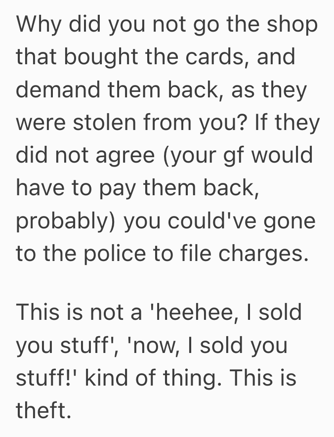 My girlfriend (22F) recently took my storage locker to a local card shop and sold my whole collection.