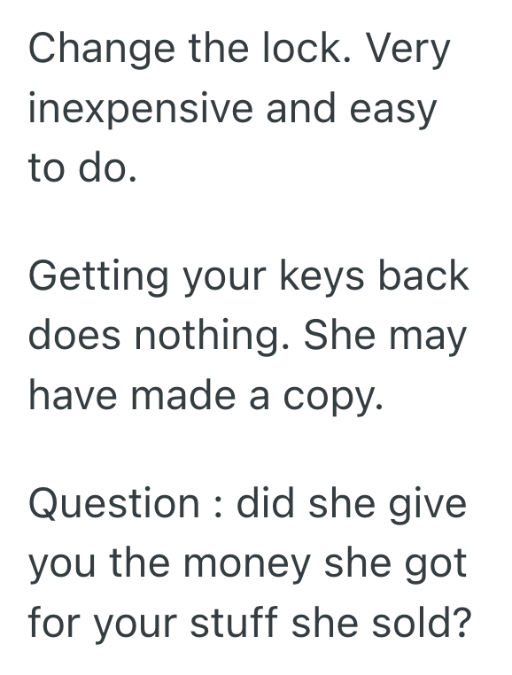 This commenter thinks he should be very wary of trusting her with any of his other belongings.