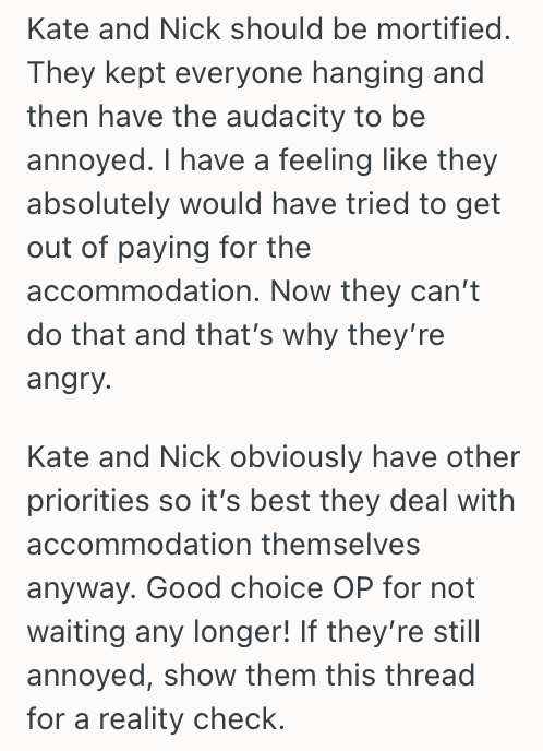 Read on to find out what happened when eventually, they booked accommodation without them.
