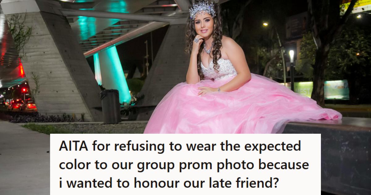 AITA for refusing to wear the expected color to our group prom photo because i wanted to honour our late friend?
