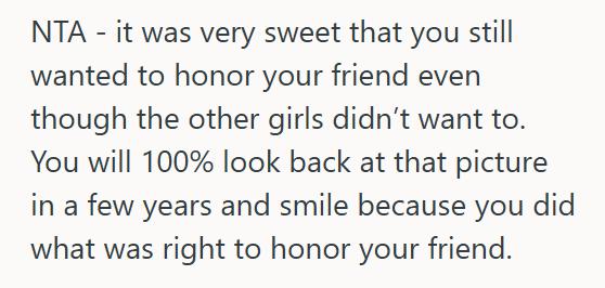 Tags: · aita, deceased friend, group photo, honoring, picture, prom, prom dress, reddit, teen drama, teenagers, top