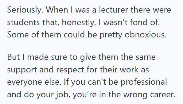 She never said a bad word to me again and graded me fairly for the rest of the semester.