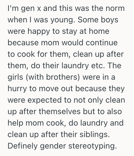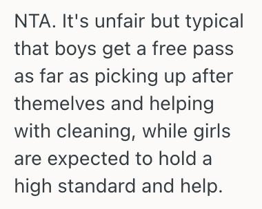 This teenage girl noticed that her mom doesn’t always ask her brothers to do chores.