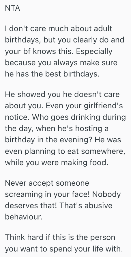 Tags: · adult birthday, aita, birthday, birthday celebrations, birthday meal, birthday party, disappointing birthday, neglectful boyfriend, picture, reddit, relationship drama, stories, top, uncaring boyfriend