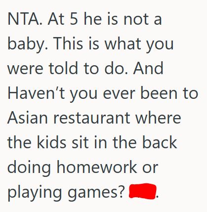 He tells me to just “bring the kid in and have him sit in one of the booths”.