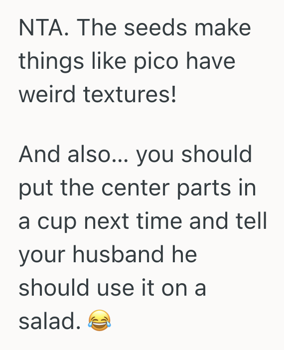 AITA for cutting out the core and seeds of the tomato and throwing it away?