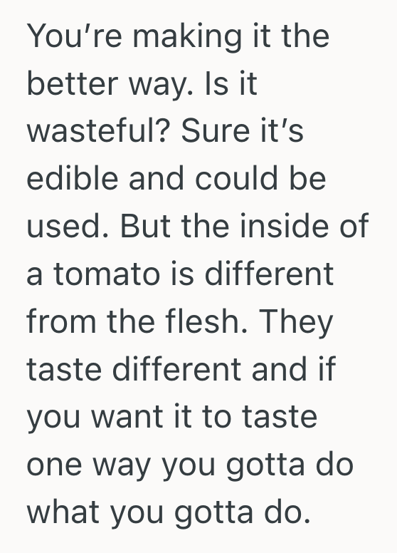 So, AITA for cutting out and throwing away the core and seeds of tomatoes?
