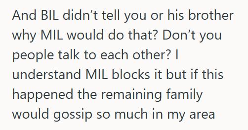 MIL has not spoken to us since Easter, including when my husband called and texted on Mother’s Day. We learned from BIL that they had debated getting their own VRBO but realized how close it was to all the family we would be visiting.