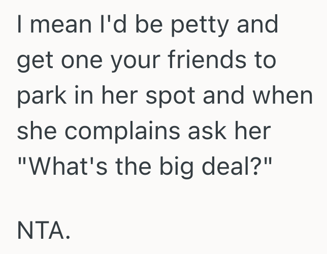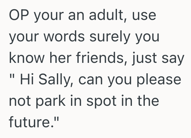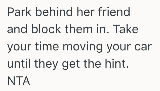 I know she doesn’t park in people’s spots, but apparently her friends get a pass.