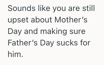 Now, he’s mad because she “ruined” Father’s Day for him.