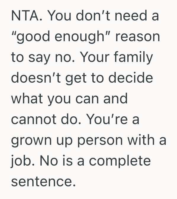 No is a complete sentence, says this person.