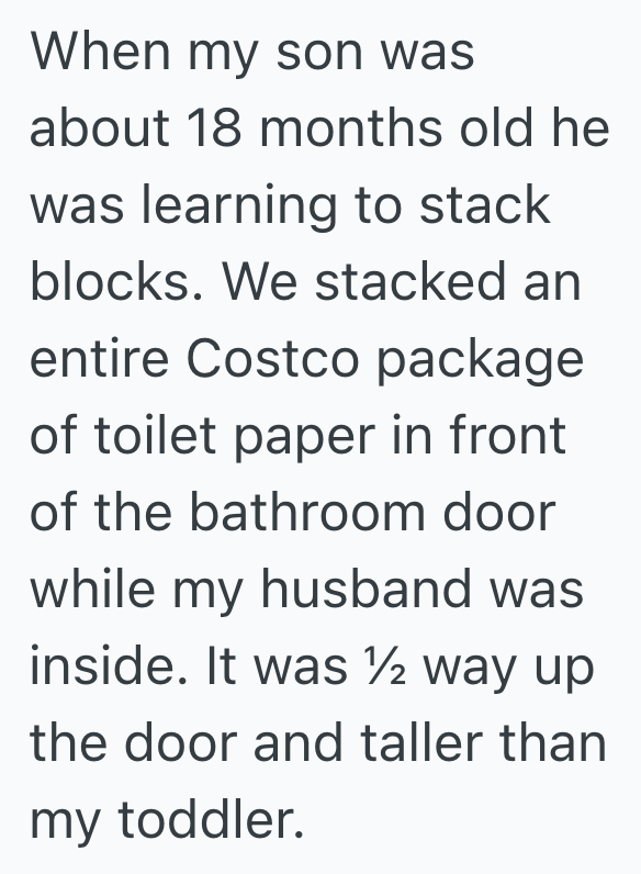 Whenever he does this I’ll go and grab one or two extra rolls, put one on the holder and leave the rest on the back of the toilet.