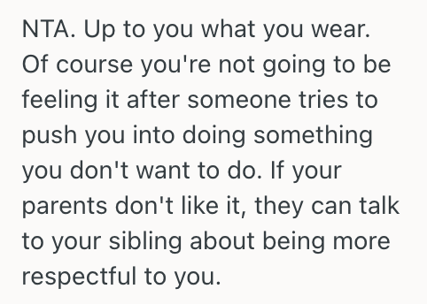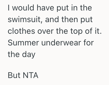 My sibling basically started out of nowhere pushing me to put on a swimsuit as we were leaving.