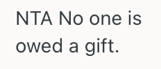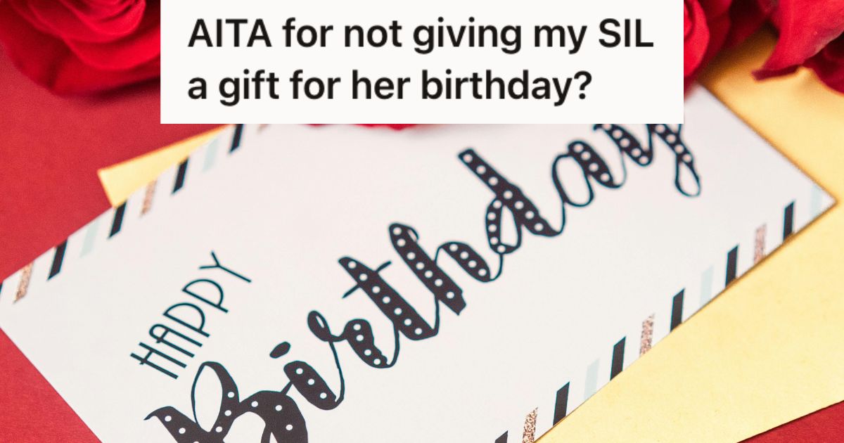 Because of this, she and her husband decided not to give her a gift on her birthday, but now her sister-in-law is mad at them again.