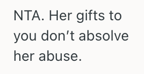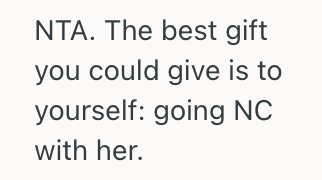 We usually give her a gift, but this year, she has bullied me, my husband, and some members of the family.
