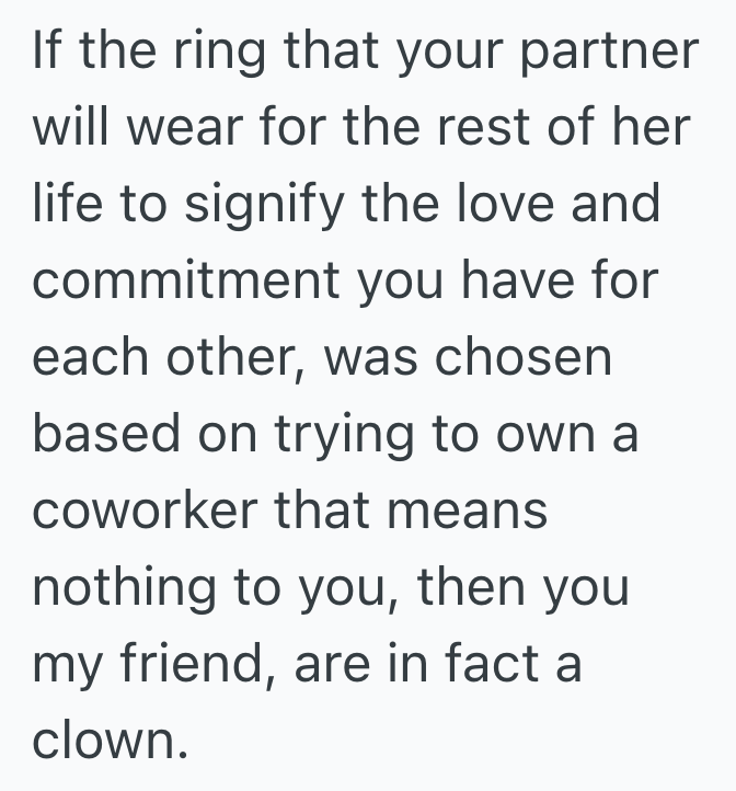 Make my girlfriend feel bad at work? I’ll make you feel bad about your ring.