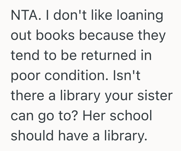 She is willing to let her sister read her books, just not books that are too mature for her.
