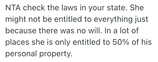 We had no formal will—everything went to her as his legal spouse.