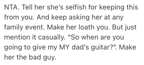 AITA for demanding my late father’s guitar even though my stepmom says it should go to my baby half-brother?