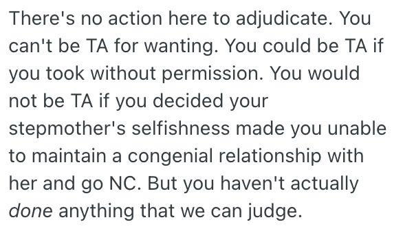 The stepmom is really being unreasonable and kind of heartless.
