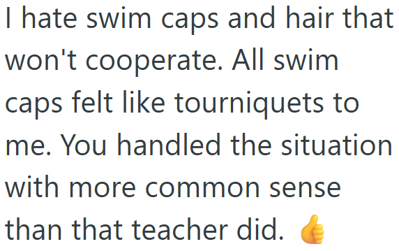 Student Had Thick Hair And Her Swim Cap Kept Coming Off During Swimming Class, So When A Teacher Reprimanded Her She Made The Whole Problem Disappear