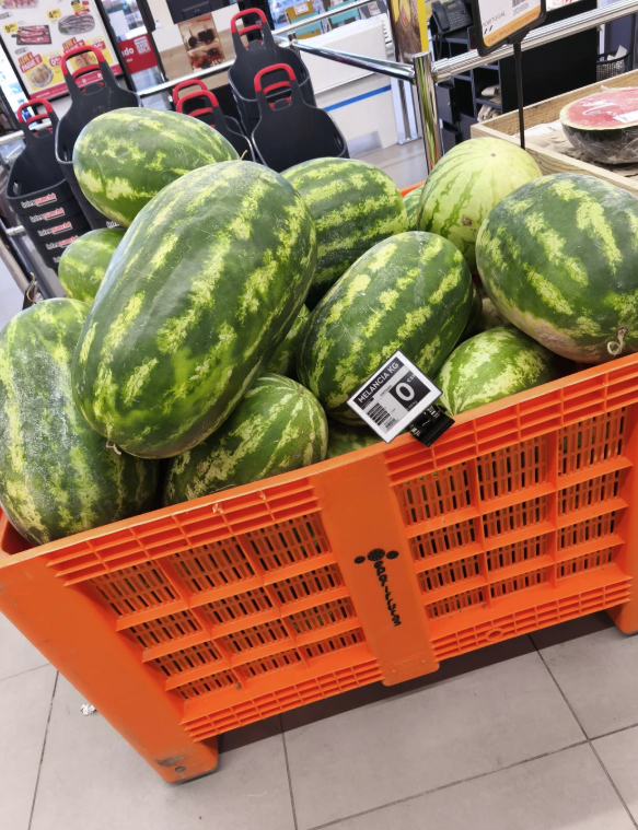 – Normal watermelons at a Portuguese supermarket