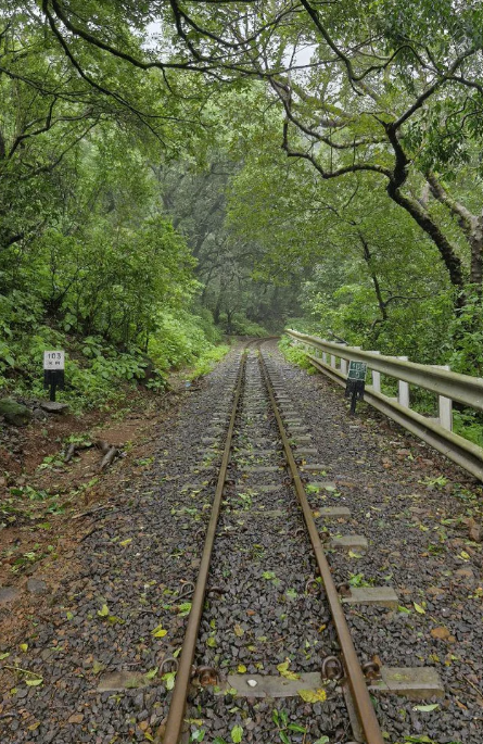 Where the rails vanish into green infinity