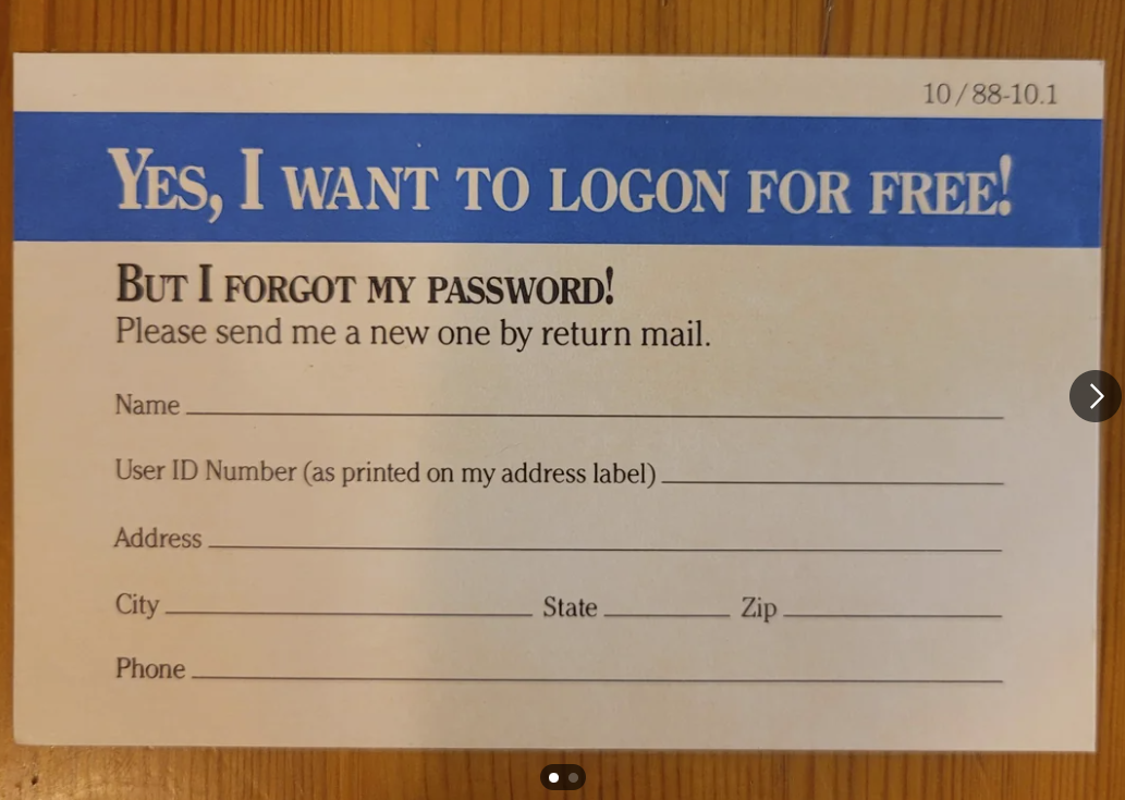 – If you forgot your password in the ’90s, you had to send this via USPS