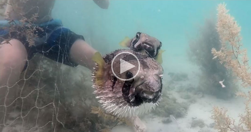 snorkelers rescue porcupinefish caught in net video Snorkelers Rescue Porcupinefish Caught in Net video